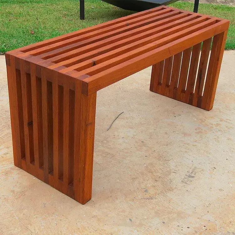 Cada peça é cuidadosamente trabalhada para garantir durabilidade e resistência, com acabamento protetivo que preserva a beleza da madeira. Escolha o Banco Ripado em Madeira Mista para um toque de elegância rústica e sustentabilidade no seu espaço.