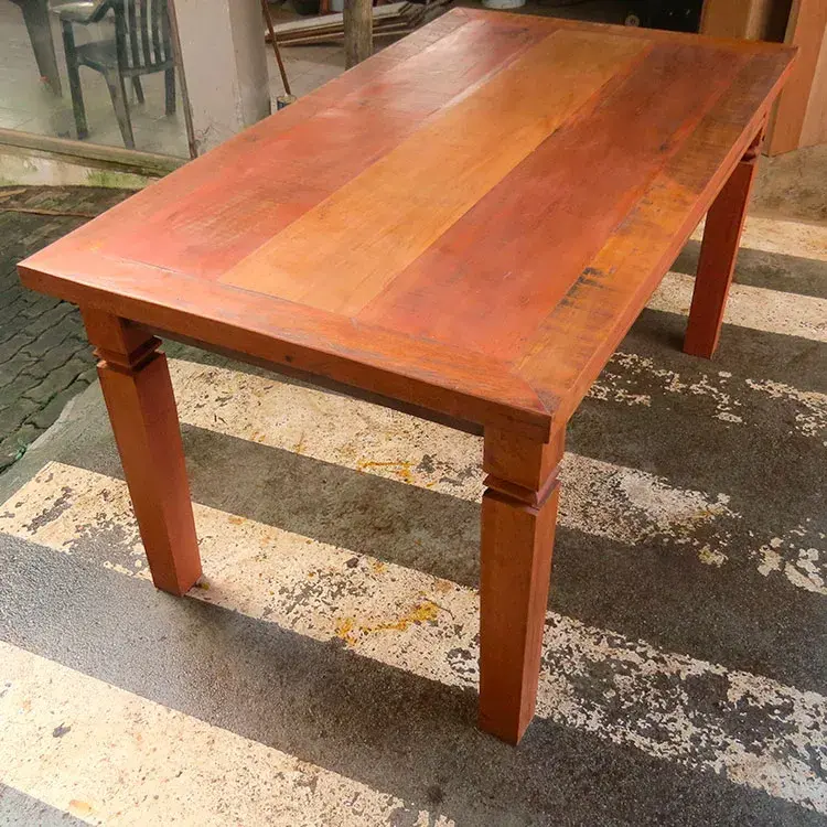 Mesa de peroba rosa, dimensões 1,60m x 0,80m, para até 6 lugares. Estilo rústico com acabamento premium e confecção própria.